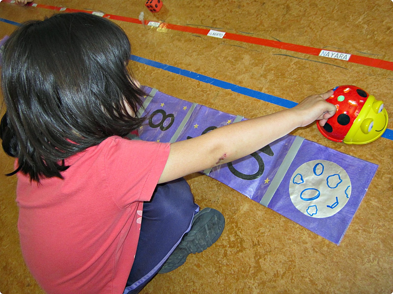 A nuestra profe se le ha ocurrido que ahora que ya sabemos manejar a nuestra mariquita ( hemos estado jugando con ella en el rincón de robótica del aula para prender a moverla), y después de contarnos el cuento de "¿A que sabe la luna?", que nuestra mariquita robot también puede llegar a la luna.
