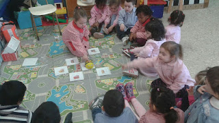 Algunas de las sesiones las hemos hecho en francés, practicando el vocabulario que necesitamos en este idioma. También lo hemos utilizado en psicomotricidad y hemos jugado a ser "Bee bots".